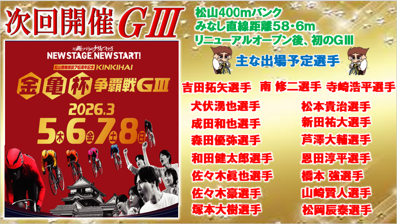 3/5㊍から松山GⅢ【金亀杯争覇戦】開催!